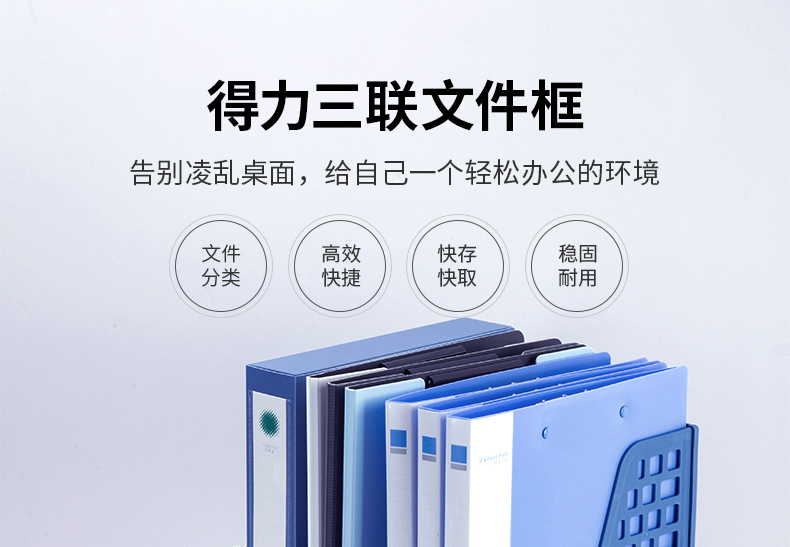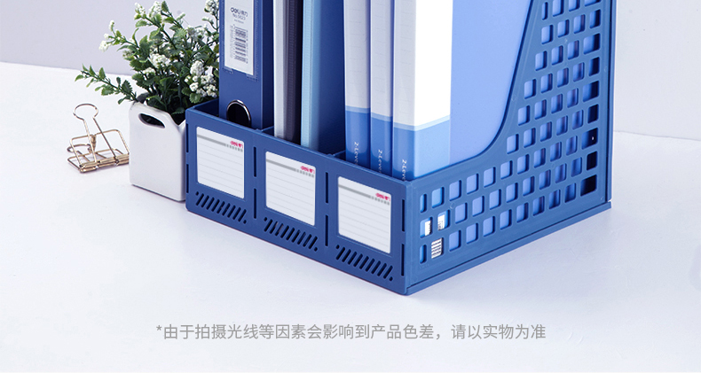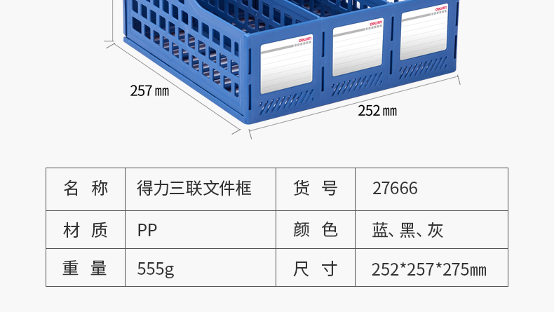 得力(deli)三聯(lián)鏤空桌面文件框 三欄帶標(biāo)簽穩(wěn)固文件欄/文件筐/資料框 黑色